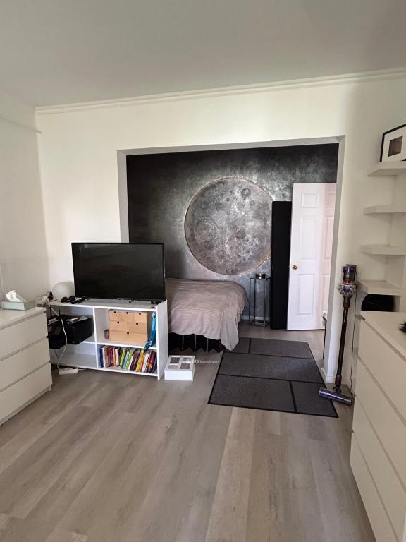A nagy ablakoknak köszönhetően napfényes, ráadásul szép zöldövezeti panoráma tárul elénk.