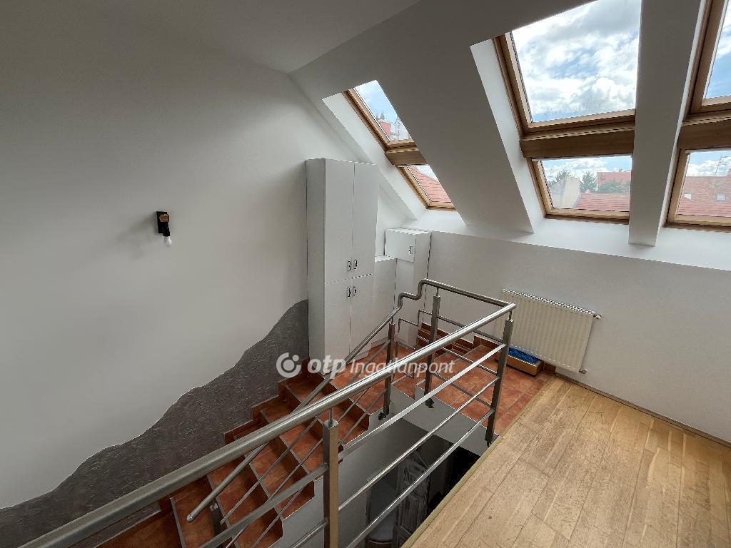 Eladó Mosonmagyaróvár szívében, a Fő utcán egy igazán különleges, 69 m2-es belső kétszintes tetőtéri lakás, amely tökéletes választás mindazoknak, akik modern, világos és otthonos tereket keresnek, ugyanakkor fontos számukra a belváros közelsége. Tágas nappali étkezős konyhával, külön hálószoba és két félszoba, valamint modern zuhanyzós fürdőszoba kényelmes otthont biztosítanak, a minőségi burkolatok és a Velux tetőtéri ablakok egész nap természetes fényt varázsolnak a helyiségekbe. A lakás klímával felszerelt, egyedi gázkazán gondoskodik a fűtésről, a kibővített villanyhálózat és az önálló mérőórák (víz, gáz, villany) pedig a modern igényeknek megfelelő, alacsony fenntartási költségeket garantálnak. A fedett autóbeálló tovább növeli a kényelmet. A rendezett társasház kulturált lakóközösséggel rendelkezik, a környéken pedig minden megtalálható, amire szükség lehet: boltok, éttermek, iskola, egyetem és parkok mind néhány perc sétára vannak, valamint a jó tömegközlekedési kapcsolatok is biztosítottak. Ez az ingatlan a belvárosi élet minden előnyét kínálja egy nyugodt környezetben, ahol az OTP Ingatlanpont teljes körű ügyintézéssel áll rendelkezésre, legyen szó kedvező OTP Banki hitel- és kamatkedvezmények igénybevételéről vagy az adás-vétel folyamatának gyorsított, szakértői támogatásáról. HÍVJ! MUTATOM!