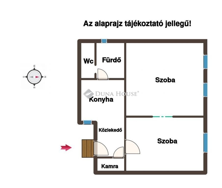 - Két nagyméretű szoba, konyha, fürdő, wc, kamra és egy közlekedő.