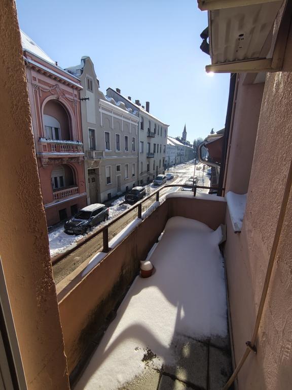 A lakás egyik különlegessége a két erkély: az utcára néző a város lüktetését hozza közel, míg a hátsó udvarra néző erkély valóban csendes, ideális pihenéshez, olvasáshoz, egy nyugodt reggeli kávéhoz.