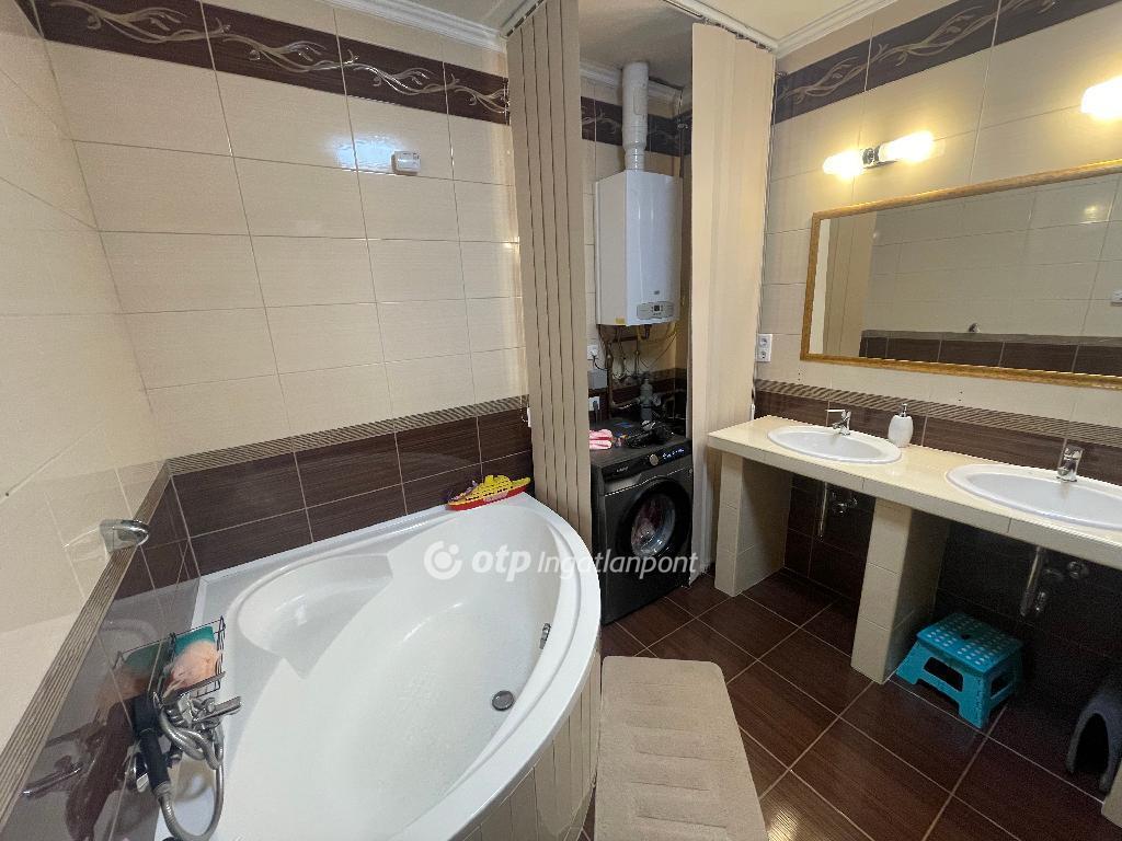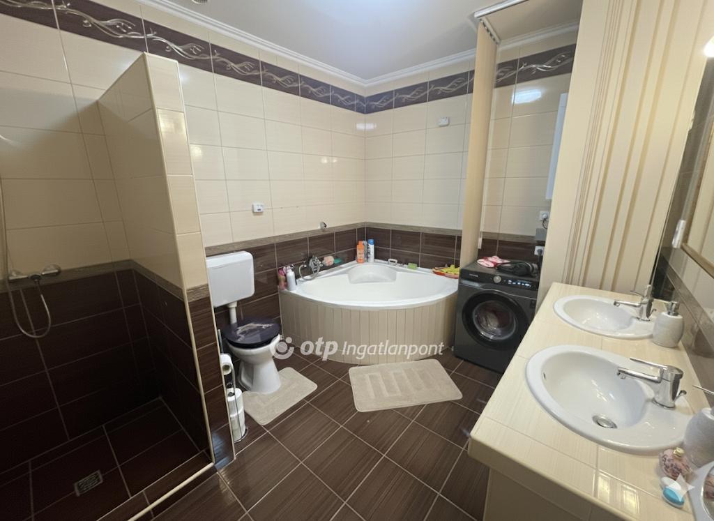 Az ingatlan nemcsak a garázs adta tárolási lehetőséget biztosítja (amely jelenleg nagyméretű kamraként szolgál), de az előtte lévő térkövezett autóbeállóval is rendelkezik, ami garantálja a kényelmes és biztonságos parkolást. Az amerikai konyhás nappali teraszra nyíló része egyszerűen elválasztható a konyha funkciótól, így az elrendezés rugalmasan alakítható. Fontos kényelmi tényező, hogy a lámpatesteken és búrákon kívül minden ingóság a vételár részét képezi, ami jelentős megtakarítást jelent a költözéskor.