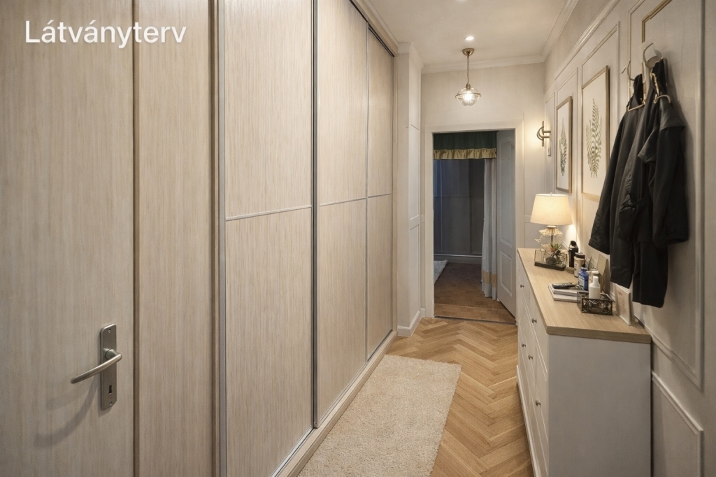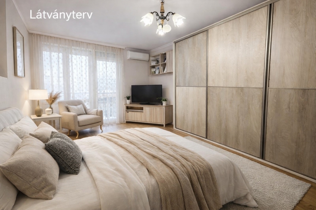 A hirdetésben szereplő képek között látványtervek is megtalálhatók, amelyek segítenek bemutatni az ingatlanban rejlő további lehetőségeket és a berendezési potenciált.