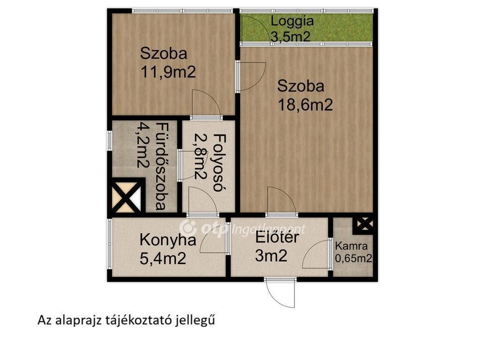 A 3. emeleti, jól elosztott lakás 50m2, 2 szobával, konyhával, fürdőszobával, kamrával és előszobával rendelkezik. Az ingatlan körbejárható, világos és praktikus elrendezésű. A lakáshoz tartozik egy 3 m2-es loggia, valamint egy tágas, földszinti tárolóhelyiség, amelyet csak két lakás használ.