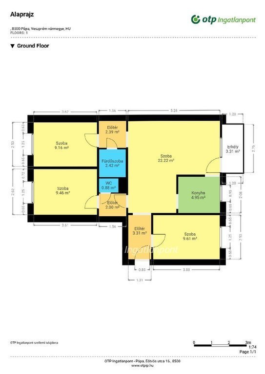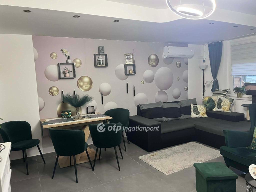 KIVÁLÓ BEFEKTETÉSI LEHETŐSÉG PÁPÁN! Itt a lehetőség, hogy kis lakását nagy méretű lakásra vagy családi házát lakásra cserélje! Eladó egy PRAKTIKUS és KÉNYELMES, NAGYCSALÁDOSOK számára megfelelő lakás. Veszprém vármegyében, Pápán, a város kedvelt övezetében kínálok megvételre 1+3 szobás, 69 m2-es, igényesen felújított, modern belső kialakítású társasházi panellakást, nagy 3,3 m2-es erkéllyel. A társasház, amelyben az ingatlan található tiszta, rendezett, ápolt, biztonságos és csendes zöldövezeti részen található kulturált lakóközösségben. A lakást több fázisban újították fel, megtörtént az ablakok cseréje, majd a bejárati ajtó és a belső ajtók cseréje, új minőségi burkolatokat kapott az ingatlan. A jó elosztású lakás egy tágas amerikai konyhás nappaliból és étkezőből, három külön bejáratú, tágas és napfényes szobából, fürdőszobából, egy külön WC-ből, előszobából, erkélyből áll. A lakás jó elosztású, világos, modern stílusú, új, nagy teljesítményű hűtő-fűtő klímával ellátott. A nappalihoz kapcsolódik az erkély, ahonnan gyönyörű panoráma tárul elénk. A szobák laminált parketta burkolatúak, a többi helyiség járólap borítású. A vételár részét képezi a szép konyhabútor. Az előszobában és közlekedőben új magas fényű falig érő beépített szekrény került kialakításra. Az otthon melegéről egyedi mérőkkel ellátott házközponti fűtés gondoskodik. A lakást rezsije alacsony, a víz, villany, gáz egyedi elszámolású. Új a bejárati ajtó, a nyílászárókat korszerűsítették, régi nyílászárókat új műanyagra cserélték, melyek redőnnyel ellátottak. Az épület körül kényelmes parkolásra van lehetőség a közterületen, de külön megállapodás alapján garázs vásárlás is megoldható. A lakás mindig nagyon világos, kiváló elrendezéssel rendelkezik, beépített szekrényekkel és hatékony tároló megoldásokkal, jó helykihasználással. Ajánlom mindenkinek, befektetőknek, fiatal pároknak, első lakást keresőknek a figyelemébe ezt a szép ingatlant, amely alacsony rezsi költségű, energia igényű, környezete nyugodt, tiszta természetben való kikapcsolódásra lehetőséget nyújtó. A közelben találhatók boltok, orvosi rendelő, gyógyszertár, posta, dohánybolt, italbolt, zöldséges, buszmegálló, óvoda, bölcsőde, iskolák, kikapcsolódásra és sportolásra lehetőséget adó létesítmények, külsővárkerti szabadidő park, a várkertfürdő. Parkolás a lakótelep területén ingyenes. A lakótelepről könnyen megközelíthető a belváros, akár gyalogosan is, de a tömegközlekedés is kiváló. Ez az ingatlan kiváló befektetés akár magán célra, akár bérbeadás szempontjából! Amennyiben hirdetésem felkeltette érdeklődését, keressen bizalommal. Az OTP Ingatlanpont teljes körű ügyintézéssel áll az eladók és a vevők rendelkezésére. A kínálatunkból választott ingatlan finanszírozásához kedvezményes hitelkonstrukciót kínálunk. Az ingatlan megfelel a fix 3%-os Otthon Start Hitelprogram feltételeinek! Az adásvételi szerződés megkötéséhez igény szerint megbízható ügyvédi közreműködést biztosítunk, és segítséget nyújtunk az adásvételhez kapcsolódó ügyek intézéséhez is. Az ingatlanról készült alaprajz, illetve fényképfelvételek az Otp ingatlanpont szellemi tulajdonát képezik. Ne szalassza el ezt a figyelemre méltó lehetőséget, vásároljon egy kiváló adottságokkal rendelkező ingatlant! Hívjon ma!