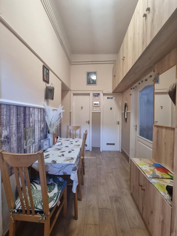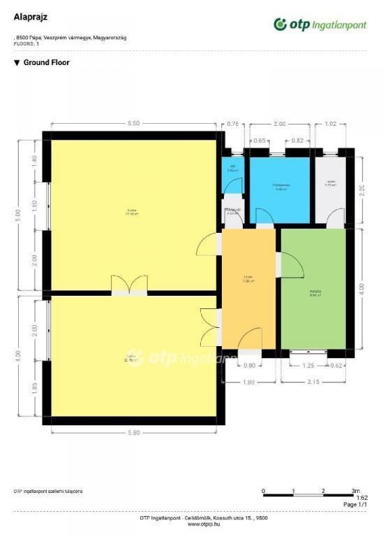 Veszprém vármegyében, Pápa belvárosának szívében kínálok eladásra egy tégla falazatú, 75 m2 alapterületű, 2 szobás, felújított, földszinti lakást. Az ingatlan 3 lakásos gondozott, rendezett, társasház, lépcsőmentes földszintjén helyezkedik. A jó elrendezésű, világos, ingatlan elosztása szempontjából 2 teljes értékű szobából, egy konyhából és étkezőből, kamrából, előszobából, egy fürdőszobából, valamint egy Wc-ből áll, ahol mindent megvan kényelmes lakhatáshoz. A szobák parketta burkolatúak, a többi helyiség kerámia burkolatu. Az előszoba nagyméretű, új beépitett szekrényekkel, amelyek a praktikus tárolást biztositják. A lakás melegéről gázkazán gondoskodik, radiátoros hőleadással. A melegvíz ellátást a gázkazán szolgáltatja. Közös költség nincs. A lakás a közelmúltban többször felújításon esett át, amely során hideg-meleg burkolatok cseréje megtörtént, új konyha készült beépitett konyhaszekrénnyel. A lakást tulajdonosa folyamatosan gondozta, csinositotta, lehetőség van az ingatlan további bővitésére, mivel a padlása beépíthető. Az ingatlan egy csendes és békés, kulturált, társasházban található, ahol jelenleg,- az eladásra kínált lakáson kívül -, csupán 2 lakó lakik, a lakóközösség barátságos és összetartó. A lakás minden mérője egyedi elszámolású. Ajánlom mindenkinek, aki a belváros központjához közel, mégis csendes környezetben szeretne élni, egy kellemes és praktikus lakásban, amely közelében található és könnyen elérhető bármi a városközpontban: az összes városi kényelmi szolgáltatás és az üzletek. Amennyiben az ingatlan felkeltette érdeklődését, keressen bizalommal. OTP Ingatlanpont teljes körű ügyintézéssel áll az eladók és a vevők rendelkezésére. A kínálatunkból választott ingatlan finanszírozásához kedvezményes hitelkonstrukciót kínálunk. Az adásvételi szerződés megkötéséhez igény szerint megbízható ügyvédi közreműködést biztosítunk, és segítséget nyújtunk az adásvételhez kapcsolódó ügyek intézéséhez is. Az ingatlanról készült alaprajz, illetve fényképfelvételek az Otp ingatlanpont szellemi tulajdonát képezik. Amennyiben felkeltette érdeklődését az általam kínált ingatlan, NE SZALASSZA EL EZT A FIGYELEMRE MÉLTÓ LEHETŐSÉGET, HÍVJON MA!
