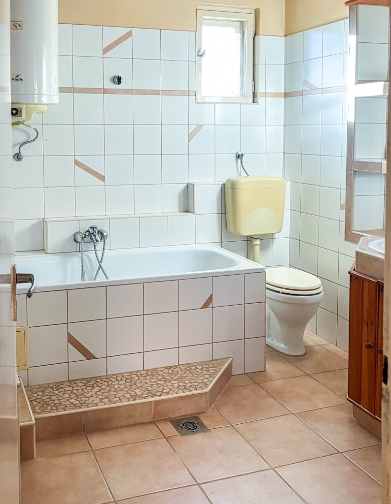 Veszprém vármegyében, Pápától csupán egy karnyújtásnyira, Pápakovácsi településen eladó egy 142 m2-es sorház! Az ingatlan remek elosztású: megtalálható az alsó szinten egy szoba, konyha, wc, garázs, kamra, kazánház, az emeleten pedig három hálószoba (az egyik erkéllyel) és fürdőszoba. A fürdőszobában kád és zuhanyzó is helyet kapott. Az ingatlan remek alapja lehet egy modern otthon kialakításának, azonban az új vevőnek a fűtés korszerűsítéssel már nem kell foglalkozni: a gázkazánt nemrég lecserélték, de az ingatlanban egy működő vegyes tüzelésű kazán is megtalálható, a nyílászárók egy része pedig már cserélve lett! A stabil ház kényelmes élettere lehet akár nagyobb családnak is, akik nem szeretnének az alapoktól felújítani, hanem csak saját igényeikre igazítani, korszerűsíteni az ingatlant! A házhoz egy majd 1000 m2-es terület tartozik, valamint megtalálható zárt kocsibeálló, tároló, gazdasági épületek és gyümölcsfák.