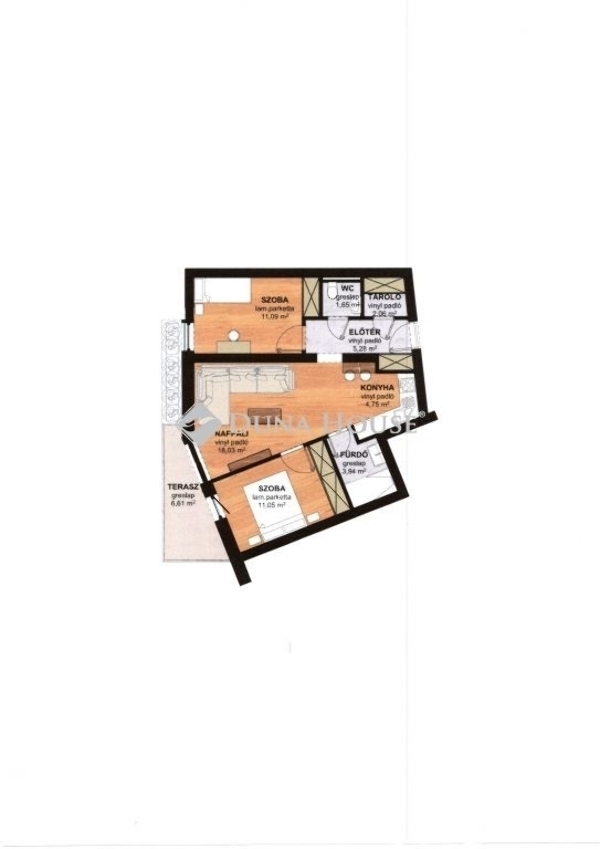 Jelen hirdetésben szereplő lakás 58m2-es, nappali + két szobás, teraszos (6,6 m2) földszinti lakás.