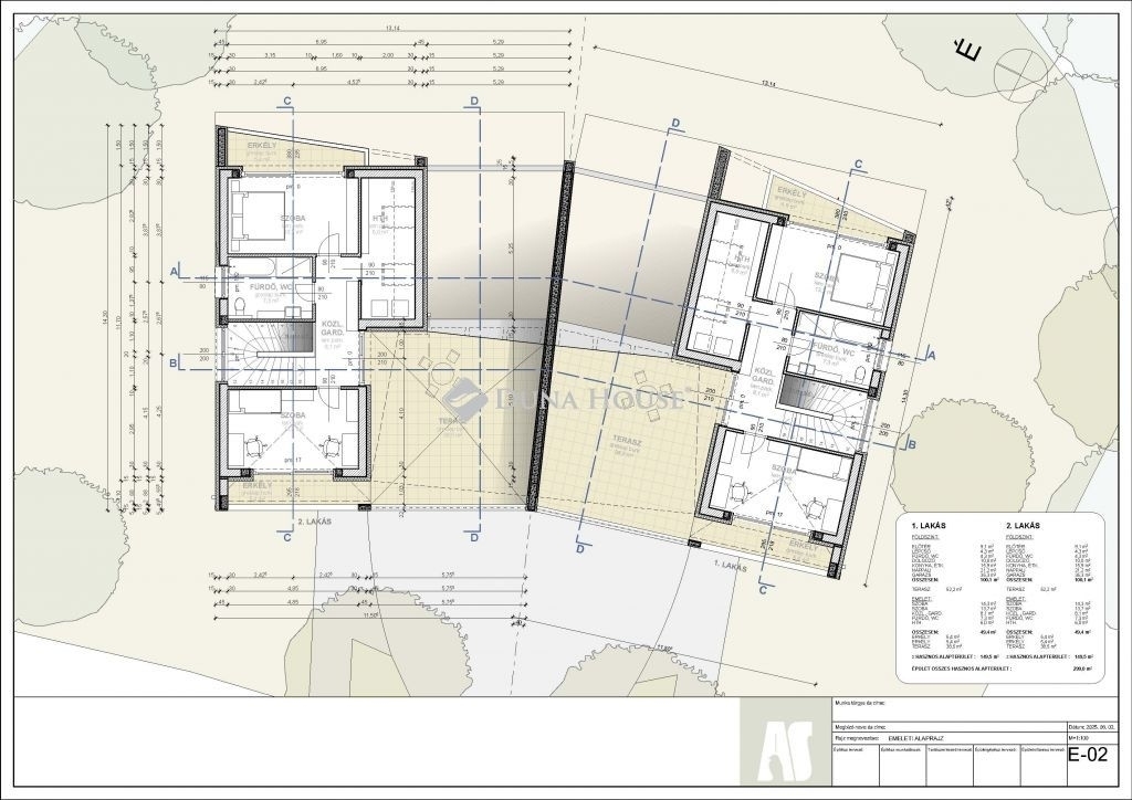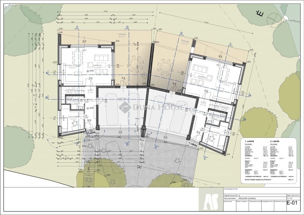 Pécs egyik legcsendesebb, erdőszéli részén, Felsőgyükésben eladó két exkluzív, újépítésű lakás!A neves tervező által megálmodott, elegáns, mindössze kétlakásos tégla társasház 2026 végén készül el. A belső kétszintes, kulcsrakész otthonok 149,5 m²-esek, saját hőszivattyúval, napelemmel, padlófűtéssel és plafonhűtéssel, rendkívül alacsony fenntartási költséggel.Főbb jellemzők:3 hálószoba + tágas nappali-konyha-étkeződupla komfort, háztartási helyiség35 m²-es dupla garázs + gépkocsi beálló90 m² teraszfelület + erkélyeksaját, kizárólagos használatú kert (630 és 582 m²)prémium burkolatok, szaniterek és nyílászárókmodern, elegáns kőburkolatos homlokzatIgazi ritkaság Pécsett: luxuskategóriás, energiatakarékos, erdőközeli otthon, minimális rezsivel. Hibás hirdetés bejelentése