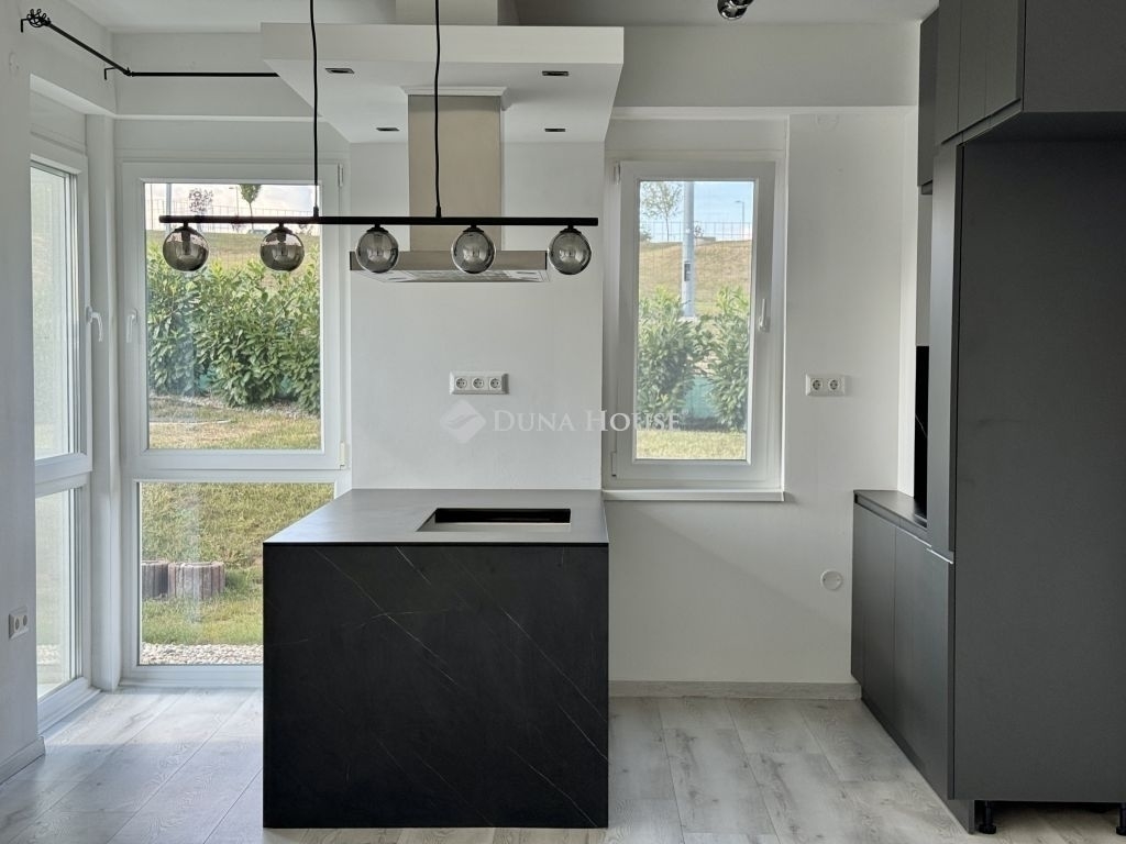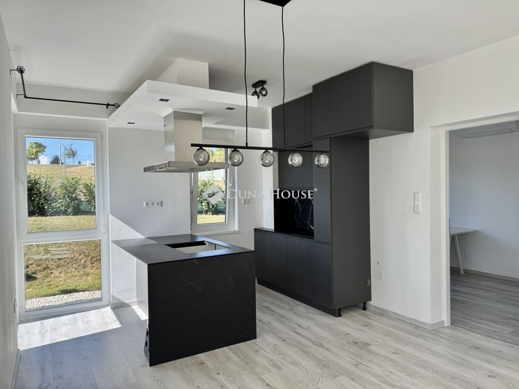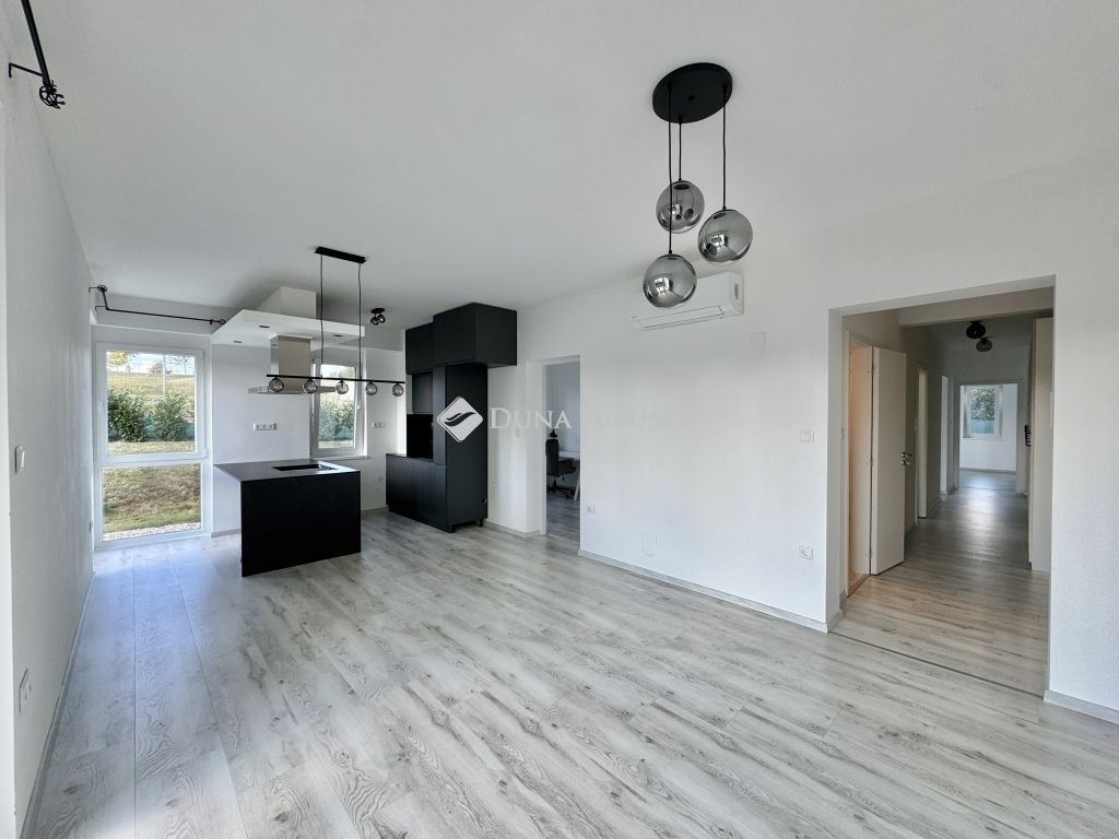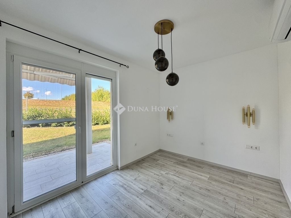 Eladó újszerű kertvárosi lakás, saját parkosított kertkapcsolattal!!!!!Pécs egyik csendes, zöldövezeti részén kínálunk megvételre egy 2023-ban átadott 92 m²-es földszinti lakást, amely minden igényt kielégítő belső kialakítással és kivételes külső adottságokkal rendelkezik.Kertkapcsolat és extra területekA lakáshoz tartozik egy 240 m²-es kizárólagos használatú, parkosított kert, benne egy könnyűszerkezetes, 10 m²-es kisházzal ideális tárolónak vagy hobbihelyiségnek.Két kényelmes terasz, mindkettő beépített, kinyitható árnyékolóval.A kertből kiskapun keresztül is eljuthatunk a két autóbeállóhoz, melyek közvetlenül a lakás előtt helyezkednek el.Belső elrendezés 3 hálószoba Tágas nappali-konyha-étkező egy légtérben 2 igényes fürdőszobaPrémium felszereltség FAP olasz hidegburkolatok Hansgrohe falba süllyesztett csaptelepek Blanco gránit mosogató és csaptelep a konyhában Minőségi német konyhabútor kompakt munkapulttal, konyhaszigettel Új, elektromos fehér alumínium redőnyök minden ablakon Hőszivattyús padlófűtés + fancoil hűtés a kellemes klímáért egész évben Alacsony rezsiköltségek, energiahatékony, és letisztult, igényes belső terek.Elhelyezkedés szempontjából is ideális:A belváros autóval mindössze 7 perc, de a tömegközlekedés is kiváló. A mindennapi ügyintézéshez szükséges szolgáltatások csupán egy percre találhatók: Tesco, Rossmann, gyógyszertár, minden gyalogosan is gyorsan elérhető. Hibás hirdetés bejelentése