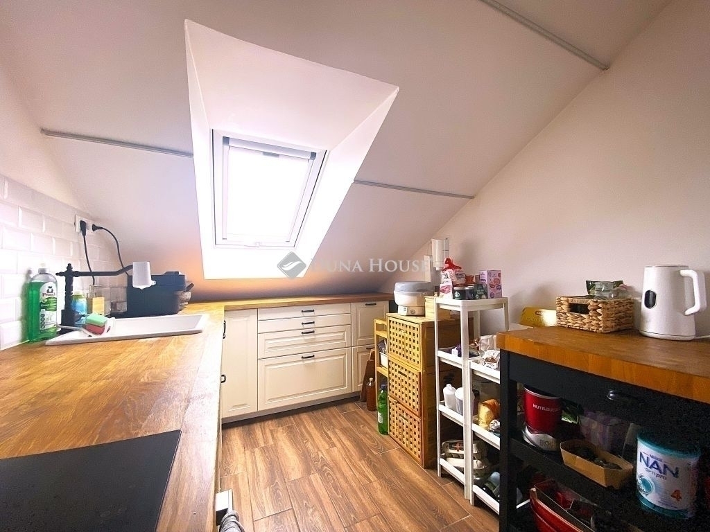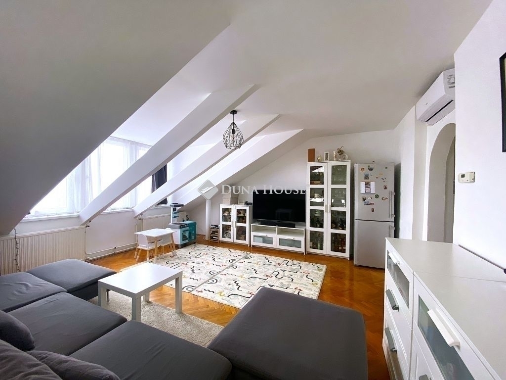 Pécsen, a közkedvelt Bánki Donát utcában eladó egy kiváló adottságokkal rendelkező tetőtéri téglalakás!A lakás bruttó 80 m²-es, nettó 50 m², míg a hasznos alapterülete 65 m², elosztása pedig rendkívül praktikus és élhető. A jól átgondolt alaprajznak köszönhetően 2 külön nyíló szoba és tágas nappali biztosítja a kényelmes életteret.A folyosóról nyílik egy kis háztartási helyiség, ahol a mosógép és szárítógép kényelmesen (hangszigetelten) elfér.Az ingatlan jó lokációban, gyerekbarát környezetben helyezkedik el, csendes, mégis jól megközelíthető környéken.Műszaki felszereltsége és állapota kiváló:- minőségi bejárati és beltéri ajtók- gáz-cirkó fűtés- a fürdőszobában padlófűtés- klimatizált, így nyáron is komfortosIdeális választás családoknak vagy befektetőknek egyaránt, akik egy jó elrendezésű, igényes otthont keresnek Pécs egyik kedvelt részén.