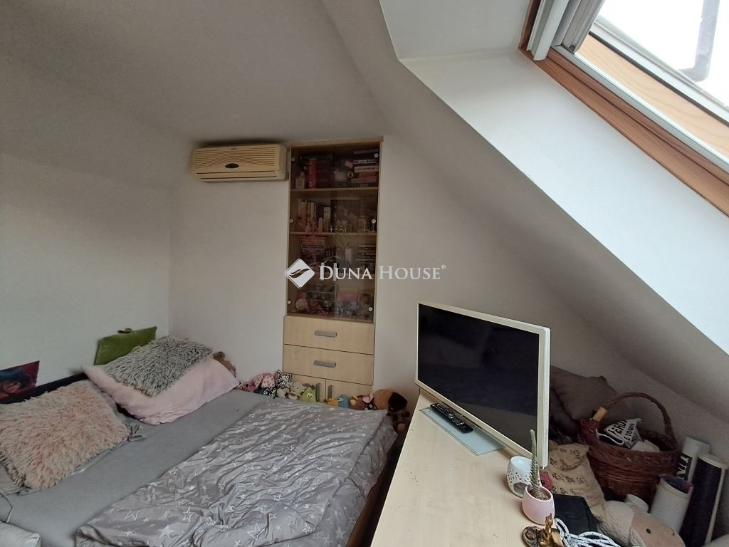 A lakás alsó szintjén található egy konyha, fürdő, wc és egy szoba/nappali, az emelten 2 külön nyíló nagy méretű szoba.