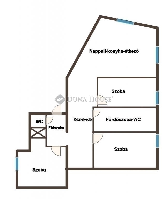 Minden ablak redőnnyel és szúnyoghálóval ellátott.