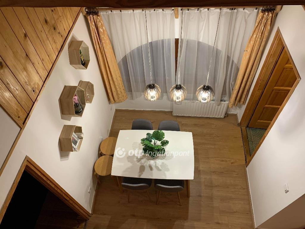 Helyiségek: 1 szoba, 2 félszoba, konyha és fürdőszoba, praktikus belső kétszintes kialakítással, ami tágas és otthonos érzetet ad. A fűtésről új, modern gázkazán gondoskodik.