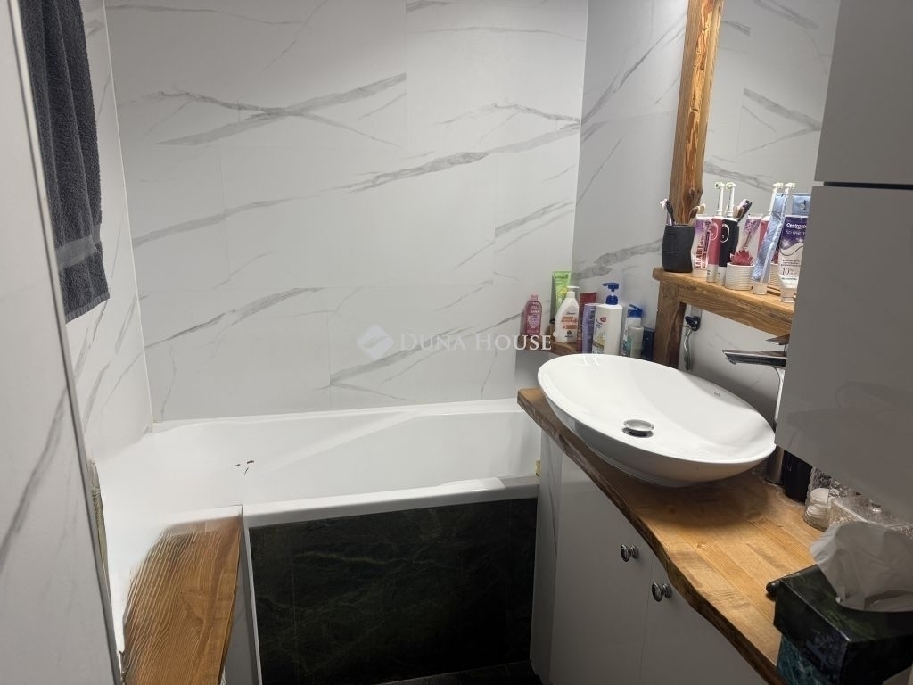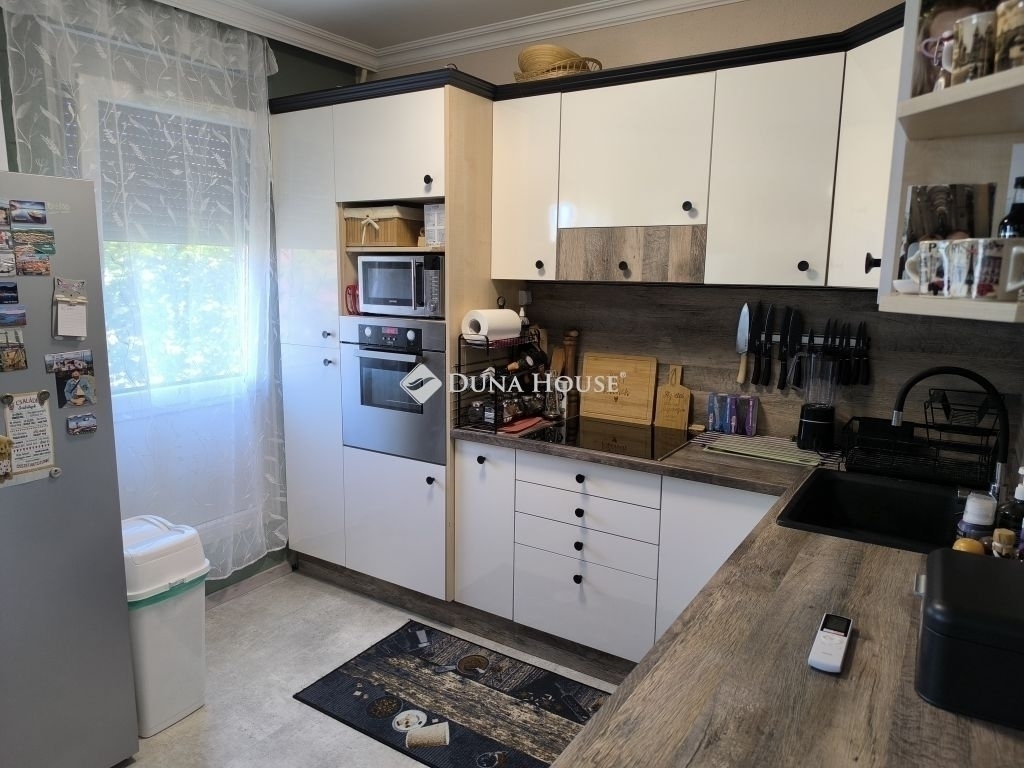 Eladó Pécsett-Rózsadombon a Fagyöngy u-ban egy 3. emeleti, 74nm-es, erkélyes, (3,5 szobás átalakított) 3 külön nyíló szobás panel lakás.A lakás teljesen felújított észak-déli tájolású.A konyha és a félszoba közötti válaszfal bontását követően egy nagy, 16 m2- es konyha - étkező lett kialakítva, modern bútorral, indukciós főzőlap + sütő és mosogatógép is van.Az épület szigetelt, műanyag nyílászárókkal ellátott. Fűtése távfűtés költségmegosztóval. Elrendezése kiváló nagy előszoba beépített szekrénnyel. A fürdő teljes körű felújításon esett át a megszokott egy csaptelep mellé beépítésre került egy kádtöltő zuhany váltós csaptelep is. Műanyag bejárati ajtó lett beépítve valamint a beltéri ajtók is cserélve lettek. A folyosón a konyhában étkezőben vinyl padló van. Szobában az eredeti laminált padlóra padlószőnyeg került. Minden ablakon redőny és szúnyogháló van. Az erkély tavasszal lett felújítva. Új szúnyoghálós redőny és padlóburkolat került ide is. Minden szobába és az étkezőbe tavasszal prémium kategóriás huzatmentes klíma lett telepítve.Az alagsorban van egy 2 lakás által használt nagy tároló is.Az ingatlan közelében buszmegálló (50m), bolt, posta, iskola, óvoda, orvosi rendelő, gyógyszertár található. A berendezési tárgyak alku tárgyát képezik.Amennyiben felkeltette érdeklődését, keressen bizalommal!