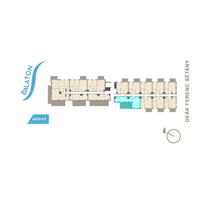 Siófok a déli part központja, 1 órányi autótávolságra Budapesttől. A parti sétányon elhelyezkedő lakás kiváló lokációval rendelkezik a közelben számtalan kikapcsolódási lehetősséggel még is távol a város zajától. 1 perc séta távolságra az Ezüstpart Yacht kikötő. A 69 lakásos projektben minden lakáshoz erkély tartozik, a fölszinten pedig saját kertek.