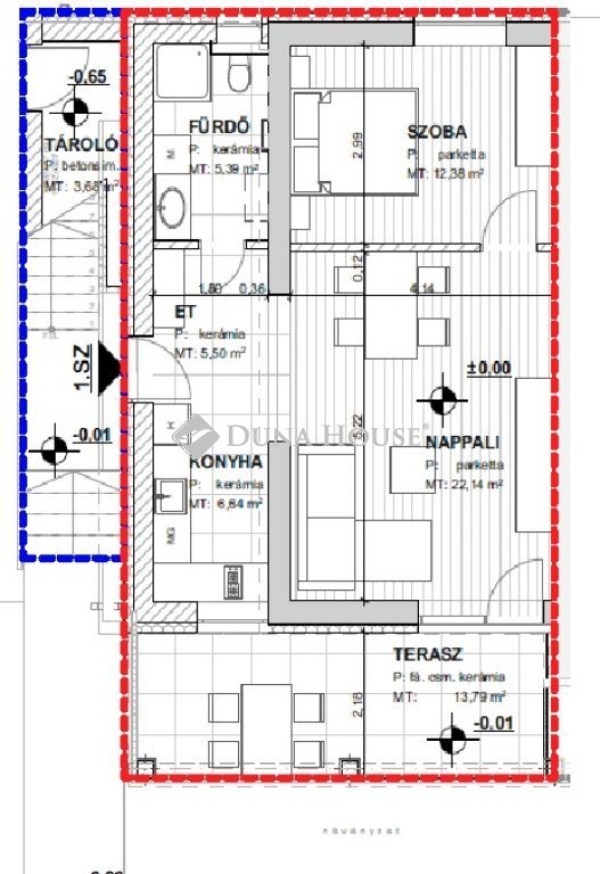 A projekt földszintjén eladó egy 52 nm-es, nappali + 1 szobás lakás, 14 nm terasszal és 57 nm kertkapcsolattal. Hibás hirdetés bejelentése