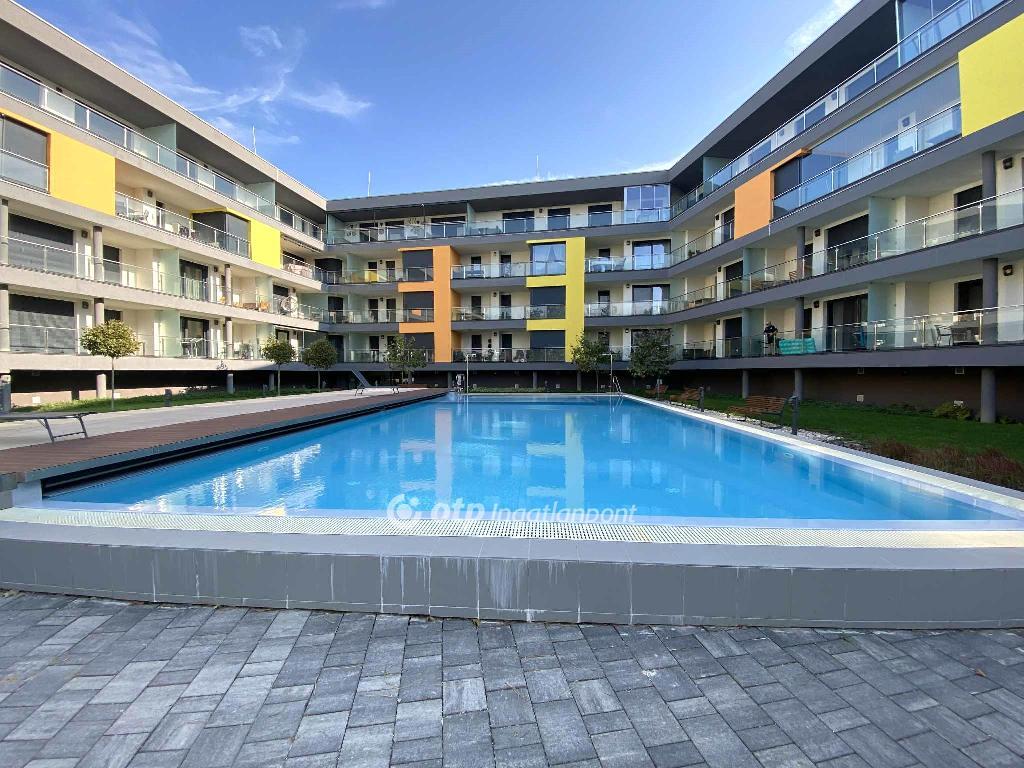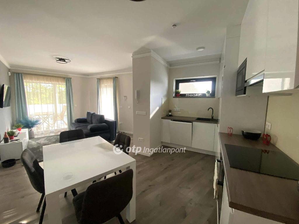 Siófok-Ezüstparton eladó egy 45 m2-es, 1 hálószobás okosotthon pár lépésre a Balaton-parttól! A 2022-es építésű társasház 3. emeletén található délkeleti fekvésű, hatalmas terasszal rendelkező lakás minden kényelmi funkcióval ellátott. A lakás hűtése, fűtése, árnyékolása, nyitása, zárása, riasztó rendszere távvezérlésű. Fűtését fancoil berendezések, a hidegburkolatú helyiségekben padlófűtés adja. A társasház kertjében feszített víztükrű felnőtt-, és gyerekmedencék szolgálják a lakók kényelmét. A ház kertje egy teleknyi távolságra van a Balatontól, a hátsó kapun kilépve 10 lépéssel elérjük a strand bejáratot. A központ szintén kényelmes gyalogtávolságra van az ingatlantól, 1 km-en belül minden szolgáltatás elérhető így nem csak nyaralónak ideális, hanem állandó lakhatásra is. A lakás teljes berendezéssel együtt kerül értékesítésre. Minden ingóság teljesen új, soha nem volt még lakva az ingatlan. Parkolás utcán, közterületen megoldható. Rugalmasan megtekinthető előzetes időpont egyeztetést követően! Részletekért kérem hívjon! Hibás hirdetés bejelentése