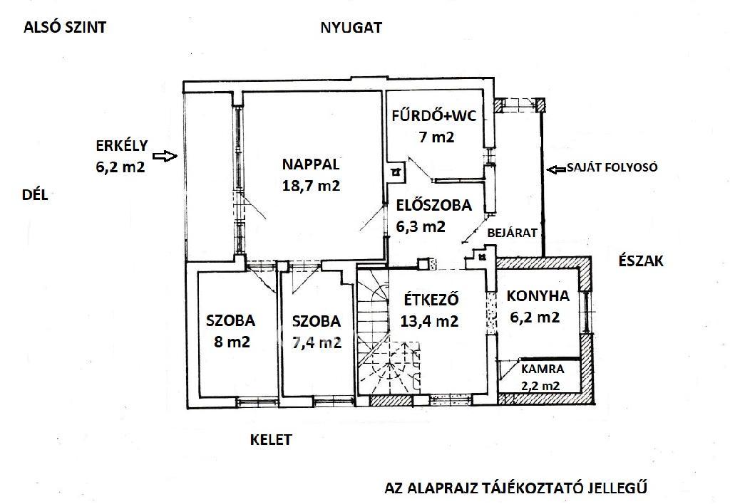A lakás bejárata az 1. emeletről nyílik.