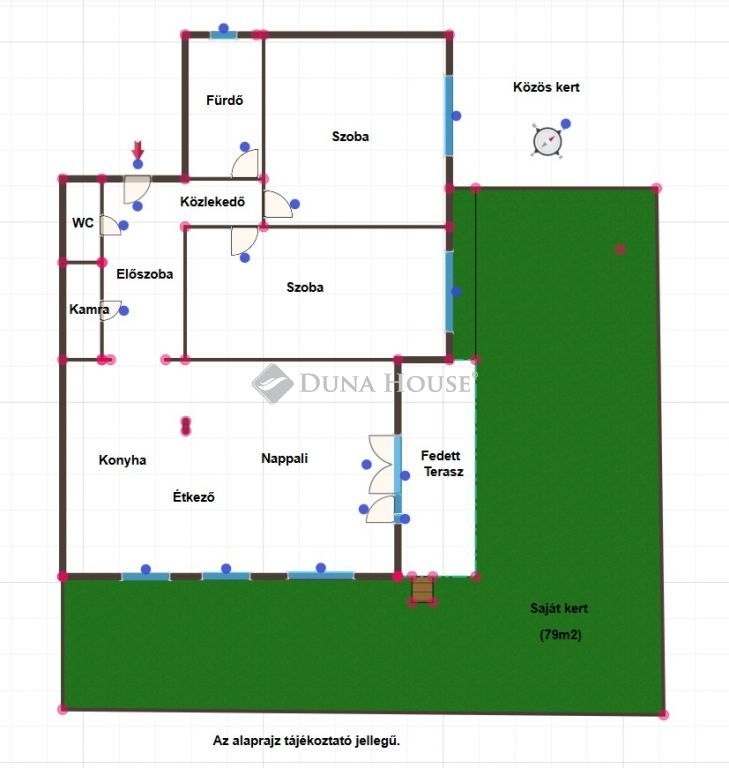 Egy 79m2-es saját kert teszi teljessé az otthon érzetét, ami kiváló lehetőség pihenésre és kertészkedésre. Ezen felül a lakóközösség tagjaként élvezheti a közös használatú kert nyújtotta előnyöket is.