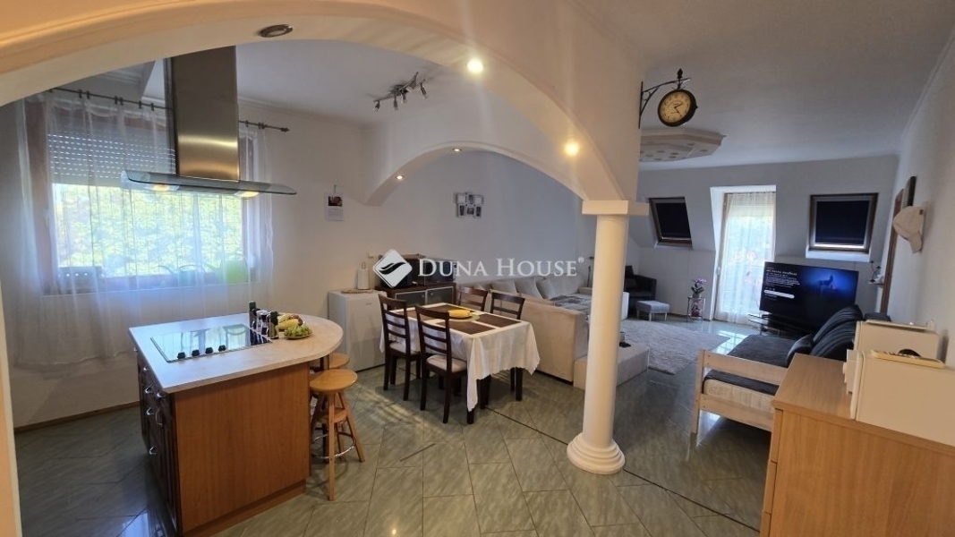 A konyha és az étkező egy légtérben helyezkedik el, így főzés közben sem kell elszakadnia a családtól vagy a vendégektől. Az ingatlant gondos tervezéssel és odafigyeléssel alakították ki, ezáltal minden egyes négyzetmétert maximálisan kihasználva.
