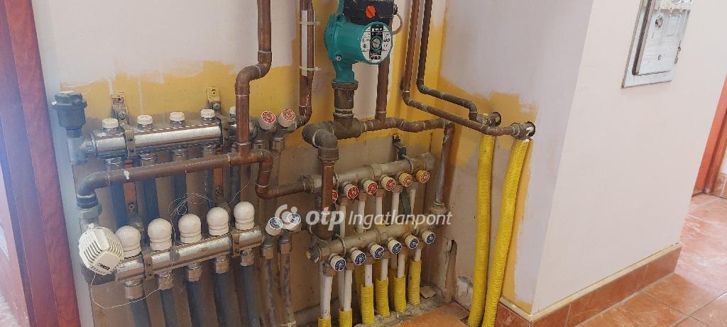 Az ingatlan helyiségei, nappali, hálószoba, dolgozószoba, előszoba, közlekedő, konyha étkezővel, kamra, külön WC és fürdőszoba. A fűtést gáz-cirkó kazán biztosítja, padlófűtéssel, igény esetén radiátorok felszerelhetők. A helyiségek burkolata járólap, az erkély összeköti az étkezőt és a hálószobát.