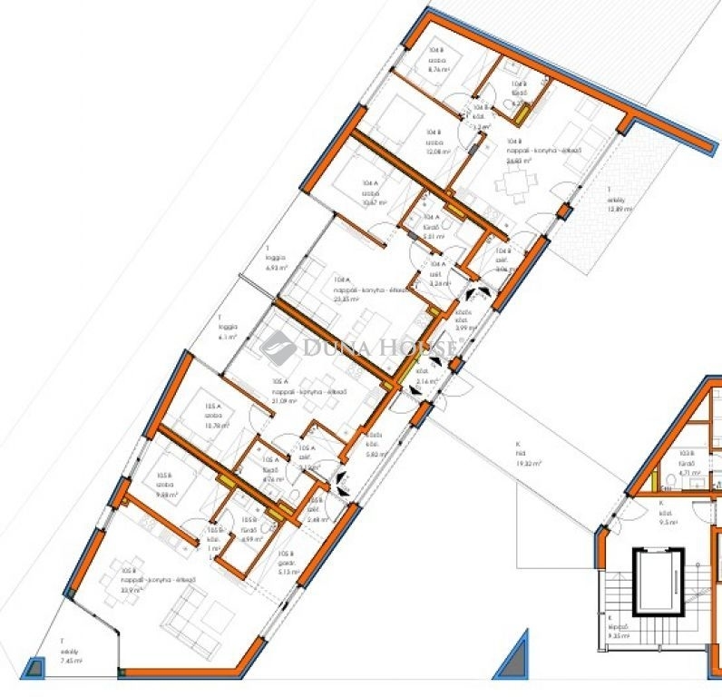 A modern, 6 szintes épület ( pinceszint, fsz., 1.em., 2.em., 3.em., 4.em. (tetőtér) ) lakásai 2 tömbben - változatos méretben készülnek, erkéllyel, franciaerkéllyel, loggiával rendelkeznek.