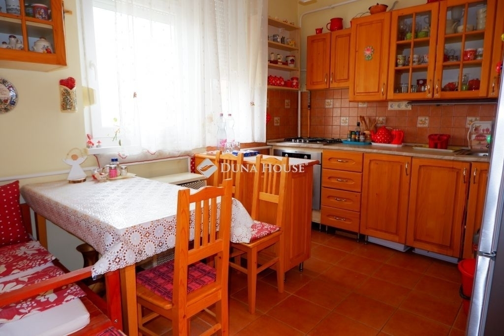 A Deák Ferenc utcában eladó egy 40 m2-es, nagy konyha-étkezős + 1 nagy szobás, 3. emeleti, erkélyes, csendes, csúsztatott zsalus építésű, konvektoros fűtésű lakás. Az ingatlanban 2011-ben teljes felújítás volt, beleértve a villany- és vízvezetékek, konyha, fürdő felújítást is. Az ablakok műanyagok, redőnyösek. Villanyból 32A áll rendelkezésre. A ház homlokzata és a tető is szigetelt. Saját, kb. 3 m2-es pincehelyiség is tartozik a lakáshoz. Egy kb. 10 évvel ezelőtti csőtörés miatt a lakás falainak egy része vizet szívott fel. Ez a csőtörés azonnal javítva lett, teljesen kiszáradt, de a falak újra festése nem történt meg, így most festési-javítási munkát igényel. Ezt megoldva viszont egy rendkívül alacsony rezsivel rendelkező, csendes, de mindenhez közeli lakás tulajdonosa lehet.