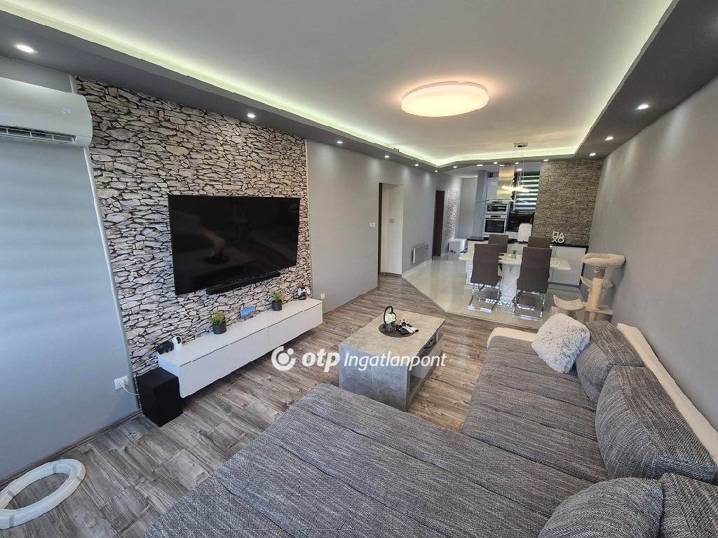 Tolna megye Szekszárd felsővárosában, a Kőrösi Csoma Sándor utca egyik csúsztatott zsalus társasházának 3. emeletén új gazdára vár egy 73 nm-es, teljeskörűen felújított, erkélyes, örökpanorámás lakás. A felújítás 2020-ban kezdődött: -Az elektromos hálózat falakon belül és kívül új vezetékelés, legmodernebb érintéses kapcsolók, ledes világítástechnika, többsoron vezérelve, pazar kivitelezéssel. -A fűtésrendszer: 2 db hűtő-fűtő klíma + 3 db elektromos fűtőtest gazdaságos hőmérsékletszabályozással./ gáz is megtalálható szükség esetén./ -Új műanyag nyílászárók és beltéri ajtók szúnyoghálóval, redőnnyel ellátva. -Amerikai konyhás nappali étkezővel, előszobával, közlekedővel egy légtérben./Hatalmas, hangulatos tér./ Beépített, modern gépekkel-van, ami garanciás. -Fűrdőszoba+WC / elválasztó fallal/-modern csempe és járólap burkolattal, kádas megoldással- Ariston villanybojler 2 hónapos. -Teljes burkolat: modern, ízléses, magas minőségű lamináltlap és járólap. -Falak frissen festve, tapétázva. -TV lehetőség 2db /nappali, háló/ vezetékelve: kábel TV+ villamosság- csak falra kell akasztani az új készüléket. -Redőnnyel ellátott kb. 4 nm-es erkély állandó fantasztikus kilátással. -Saját tároló tartozik a lakáshoz házon belül. -Akár bútorozottan is eladó, megegyezés kérdése. Szóba jöhet 2 db garázs vásárlása az ingatlanhoz: az egyik 20 nm-es, villannyal, vízzel ellátva a ház alatt közvetlenül, a másik kicsit kisebb, a közelben. Várja gyönyörű, hangulatos otthonunk családok, befektetők jelentkezését! Ide csak be kell költözni!!!! Az OTP Bank által nyújtott támogatott és kedvező hitelek lehetőségeit helyben intézzük szükség esetén. Hibás hirdetés bejelentése