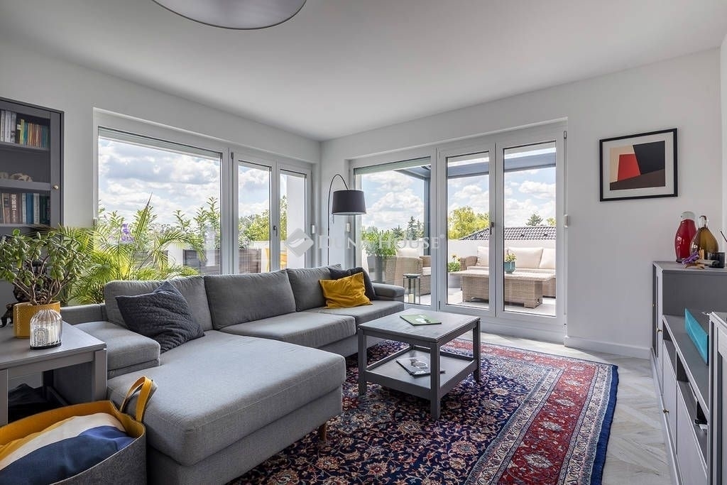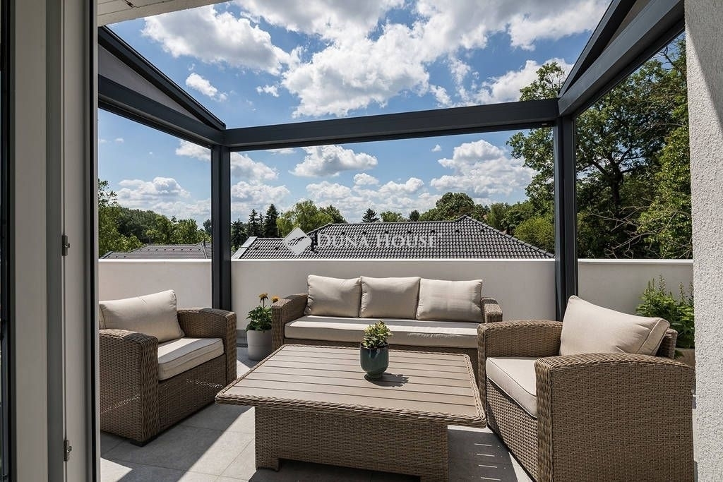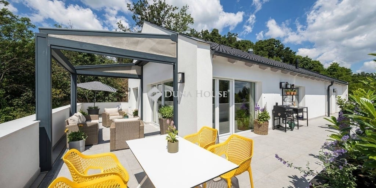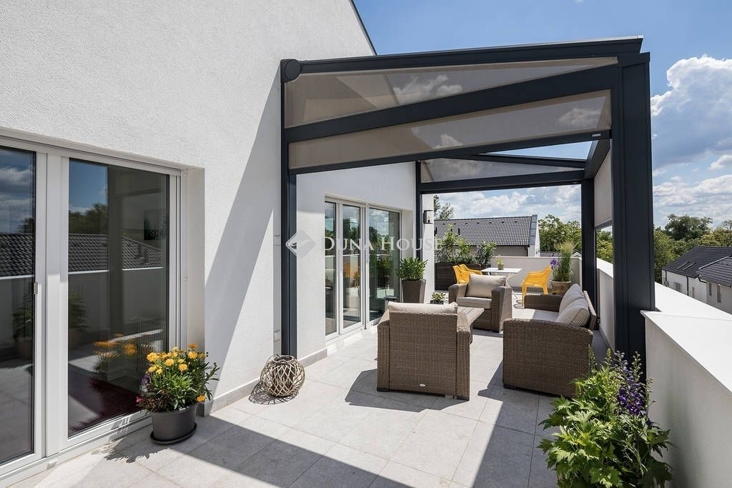 Szentendrén a Barackvirág lakóparkban ELADÓ egy 112 m2-es PRÉMIUM PENTHOUSE lakás 110 m2-es részben fedett terasszal! Kocsibeállóval! Kuriózum! Egyedülálló a piacon! Kizárólag irodánk kínálatában! Szentendrén a Barackvirág utcában eladó egy 2020-ban épült 7 lakásos társasház 2. emeletén lévő 112 m2-es penthouse lakás + 110 m2-es terasszal.Az ingatlan az alábbi helyiségekből áll: nappali-ebédlő-konyha, 3 szoba 2 fürőszoba + wc, előszoba, közlekedő, hatalmas 110 m2-es terasz!Az épület melynek tetején ékszerdobozként ül ez a lakás igényes és minőségi anyagokból épült. Az ingatlan gondosan válogatott Revoir, Paris hideg és Kaindl meleg-burkolatokkal, összesen 224 m2 alapterülettel várja új tulajdonosát. A 112 m2-es terasz kiváló lehetőséget nyújt azoknak, akik szeretnek kertészkedni, vagy grill partit rendezni. A vihar és forró napsütés ellen is védelmet nyújtó belga, Renson Lagune távirányítós motoros pergola, 4000*3000*3250mm-es méretben.Az ingatlanhoz tartoziik 2 db kocsibeálló + 10.000.000,- Ft-ért!További információért hívjon!