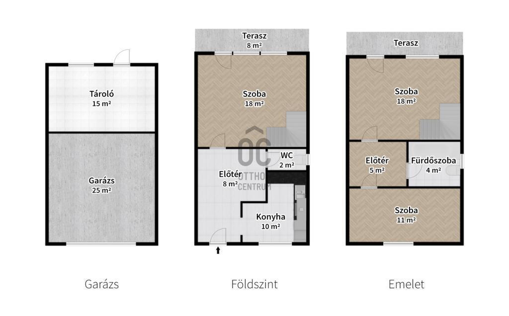 A 4 lakásos társasház az 1970-as években épült, a földszinten található a 25nm-es szerelőaknás garázs és egy 15nm-es tároló helyiség.
