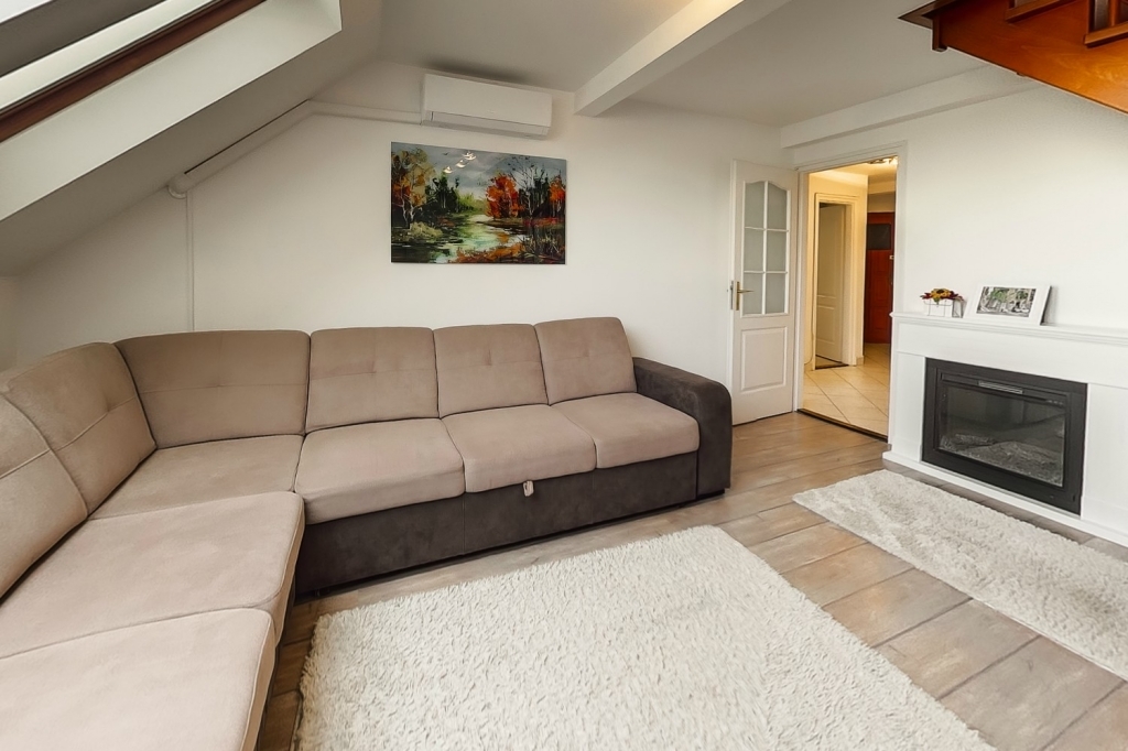 Kizárólag az OTP Ingatlanpont kiemelt kínálatából ajánlok megvételre Szolnok közvetlen központjában egy, a Barta-palotában található belső két szintes lakást. Az 1912-ben épült, szecessziós stílusú, emeletes tornyos sarokházat a 2000-es évek elején újították fel, ekkor került a tetőtér is beépítésre. A harmadik emeleten található, 85 m2-es lakás alsó szintjén nappali, szoba, konyha, étkező, fürdőszoba és WC egy helyiségben, előszoba, közlekedő és egy kis tároló került kialakításra, míg a tetőtér részben 2 hálószoba, folyosó, tároló és WC helyiség kapott helyet. Az otthon melegéről gáz kazán gondoskodik radiátoros hő leadással, valamint a nappaliban működtethető elektromos látványkandalló is, alternatív lehetőségként légkondicionáló készülékek is rendelkezésre állnak, melyek a nyári hőség elviselésében nagy segítséget nyújthatnak. A lakás kiváló, költözhető állapotban van. Az épület hívó lifttel rendelkezik. Infrastruktúra szempontjából a legideálisabb elhelyezkedésű. A belváros talán legforgalmasabb része, karnyújtásnyira megtalálható minden, legyen szó oktatásról, ügyintézésről, bevásárlásról, szórakozásról. A külvilág zaja nem hallatszik fel a lakásba, helyette a csendes belső udvar látványán túl a Tisza, és a gyalog híd csodás panorámája tárul fel. Igény esetén, a bútorzat is megbeszélés tárgyát képezheti.