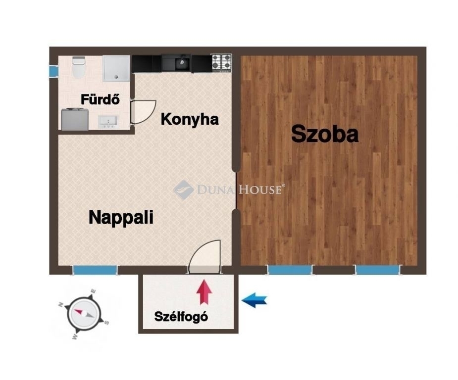 A földszinti ingatlan 2025-ben teljes felújításon esett át, megújultak a burkolatok, a fürdő és a konyha.