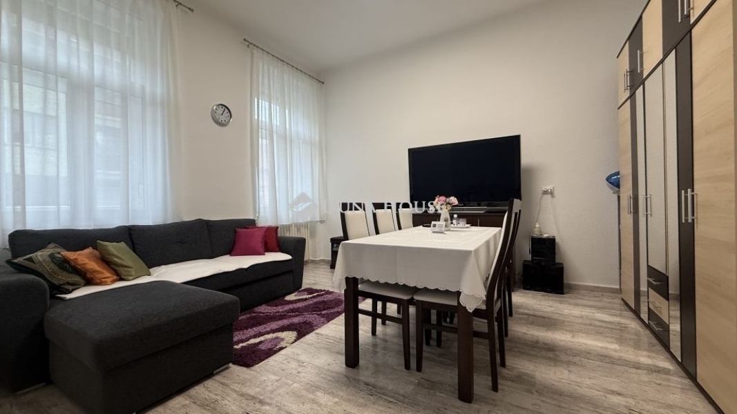 Polgári hangulat a belváros szívében lehetőségekkel teli otthon Szombathelyen!Főtér közelében kínálunk eladásra egy két nagy szobás, polgári lakást, nagy belmagassággal és tágas terekkel.A lakás félig felújított: a fürdő, a WC és az udvarra néző nyugati oldali nyílászárók már megújultak.A további felújítás során szinte korlátlan lehetőségek rejlenek benne alakítsd saját ízlésedre!(Ötlet: nagyszoba lefelezve, konyhával összenyitva nappali, két szoba kialakítható, tervrajz mellékelve)Főbb jellemzők:- frekventált belvárosi elhelyezkedés-két nagy, utcára néző szoba jól alakítható elrendezés-nagy belmagasság, időtálló polgári karakter-tágas konyha + spejz-részben felújított (fürdő, WC, nyílászárók egy része már kész)-meglévő fűtési és melegvíz-