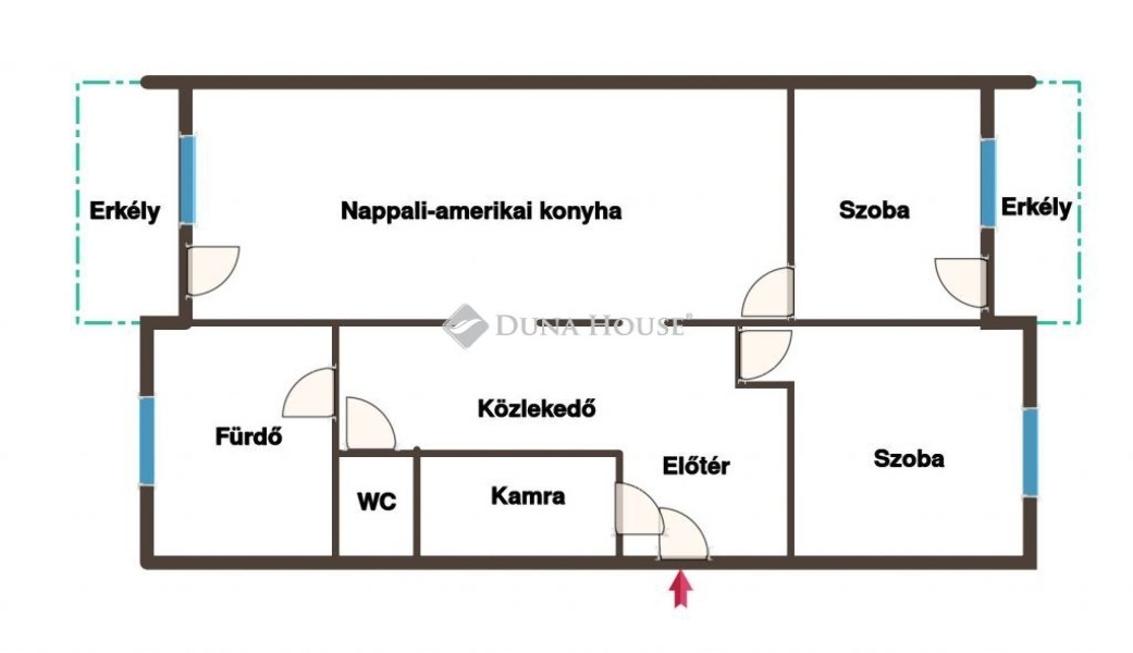 - amerikai konyha-nappali + 2 háló kialakítás