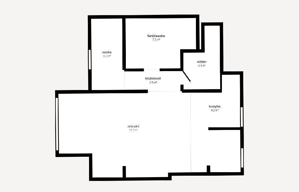 Az ingatlan az első emeleten található, két külön bejárat is biztosított (elöl és hátul).