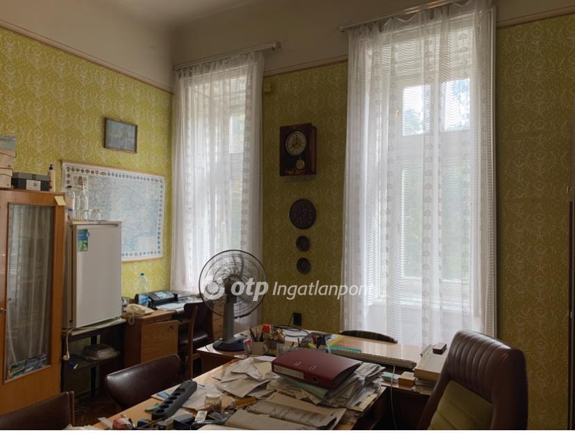 A ingatlan beton alapra tégla falazattal épült. Az irodában két szoba, közlekedő, WC és a bejárat előtt fedett terasz található. Az iroda mellett közös fallal található egy szintén eladó lakás, melyek valamikor közös egységet képeztek és egy megkapóan szép ház hangulatos lakása volt. Az iroda és a lakás külön és egyben is megvásárolható. Mellettük harmadik lakrészként önkormányzati tulajdon van. Az iroda fűtéséről gázkonvektor gondoskodik, a nyílászárók fából készültek. Melegvíz ellátását bojler végzi.