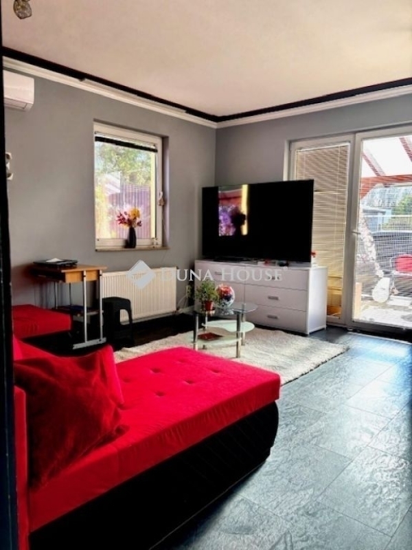 Új lakóit keresi ez az agglomerációban lévő társasházi lakás!És most figyeljen!Lakásba költözne, de nem a belvárosban? Mégis közel legyen Budapesthez?Legyen egy kis kert, mert azért nem gazdálkodni szeretne, csak élvezni a napsütést? Terasz?-Van! Medence, lehet?-Van!Parkolóhely?-Van!Körbevezetem, és döntse el Ön, hogy ideköltözne e a családjával?Üllő, családi házas övezetében, kertvárosi örnyezetbe épült fel ez a 7 lakásos társasház a 2000-es évek elején.Ytong téglából épült, cserép fedéssel, nyílászárói már műanyagok, szigeteltek. A ház szigetelése 5cm hungarocell + dryvit vakolat; a lakások fűtése gázcirkóval, hűtése légkondiciónálóval megoldott.A társasház környezete rendezett, udvara karbantartott, az épület körbekerített, kamerával megfigyelt terület.Lakói kulturáltak, összetartóak, rendezettek és barátságosak. Közösen gondozzák az udvar egyik díszét a kerti tavat és az azt körülvevő zöld óázist, illetve élvezik előnyét az udvaron lévő 8*4 m nagyságú medencének és a hozzátartozó napozó terasznak.Az udvaron található parkoló helyek dedikáltak, társasházi alapítóokiratban rögzítettek.Lépjünk be az eladó lakás területére!Mivel a társasház saroktelken helyezkedik el, két bejárata is van a lakásnak. Egyik a társasház közös udvara felől, másik pedig a szomszédos utcáról. Közelítsük meg innen az ingatlant. Kapun belépve saját használatú kertbe jutunk, melynek nagysága 180nm, itt helyett kapott egy kis kerti tároló, sütőgető kiülő terasszal, mely családi és baráti események helyszíne lehet. Itt lehetőség van még egy autóbeálló kialakítására is, bár a ház előtti terület ennek a célnak tökéletesen megfelel.A bejáratnál a napfényben üldögélve lehet élvezni a terasz adta nyugalmat. A házba lépve a földszinten egy korszerűen felszerelt konyha+étkező, nappali, előszoba, szoba és zuhanyzós fürdőszoba található. A fürdőszoba éke a beépített finn szauna, mely eladáskor marad az új tulajdonosnak.A konyha+étkező, nappali és előszoba, fürdőszoba kerámialappal, míg a szobák laminált parkettával burkoltak. Az emeletre stabil fémvázas lépcső vezet, ahol egy pihenő került kialakításra innen nyílik 2 szoba, kádas fürdőszoba.A szobák szintén laminált parketta burkolatot kaptak, míg a fürdőszoba kerámialapos borítást.Az emelet feletti padlástér szigetelt, OSB lappal fedett, tárolásra alkalmas.A helyiségek árnyékolása reluxával megoldott.A fűtés gázcirkós, radiátoros hőleadókkal, a nyári meleg enyhítéséről pedig légkondiciónáló gondoskodik.Összegezzük, mit is vásárol:-3 szoba,-nappali,-konyha+étkező,- 2 fürdőszoba ( melyből az egyik finn szaunával felszerelt)- mindez 97nm összesen.Ezenfelül még:+fedett terasz+kerti tároló+ sütögető terasz+ autó beállóÉSSSS még....- saját parkoló hely, zárt udvarban,-medence+ napozó terasz,-nyugalmat árasztó zöld udvar,- családias szomszédság.Minderről győzödjön meg a saját szemével! Hívjon és egyeztessünk még ma!Hitelezhető, rendezett tulajdoni lappal, szuperül karbantartott ingatlant vásárolhat, mely értékálló, kiváló befektetési értékkel bír!