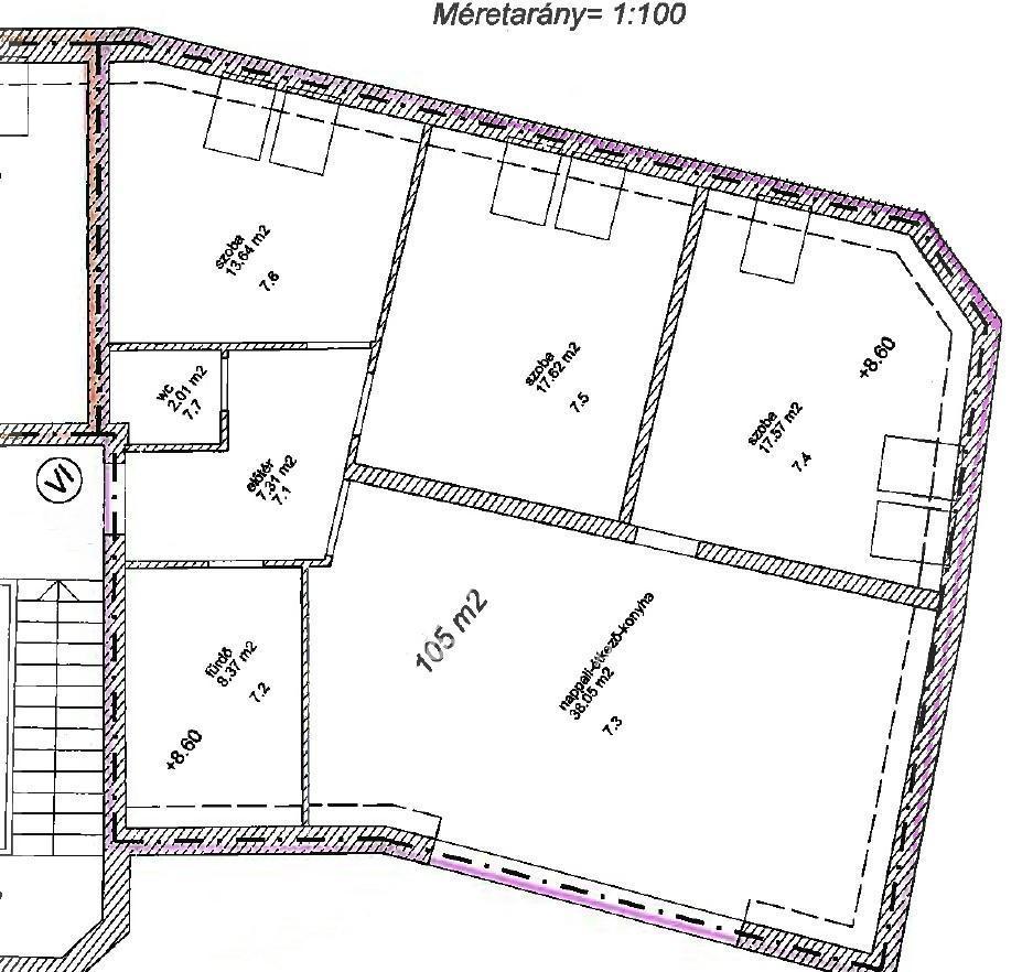 Veszprém óvárosában, a belvárostól pár perc sétára, 105 m2-es, 3 szoba + amerikai konyhás nappali elosztású, második emeleti, szép állapotú társasházi lakás eladó.