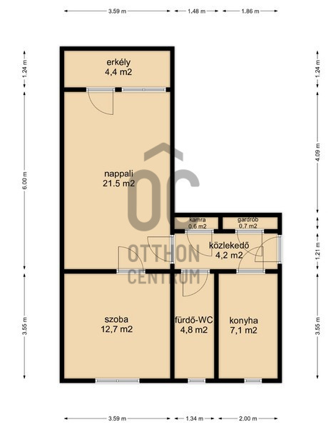 - A nappaliból nyílik a 4,4 m2-es erkély.