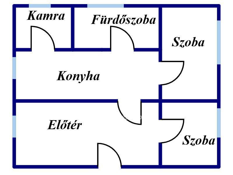 A lakás elrendezése: 2 szoba, konyha, kamra, fürdőszoba és előtér.