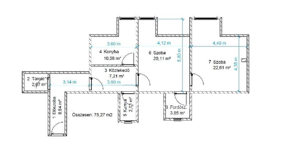 Az ingatlan elrendezése hosszanti, a két szoba jelenleg egymásból nyílik, azonban méretük lehetővé teszi egy praktikus átalakítás ? például külön bejáratúvá tétel ? kialakítását.