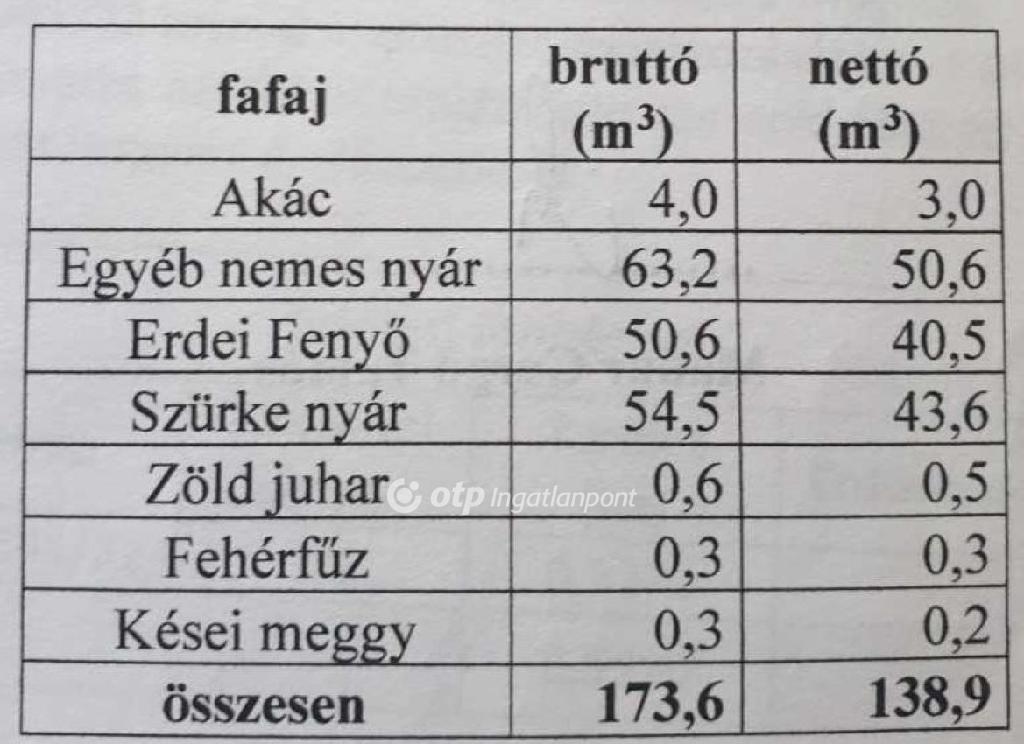 - Egyéb nemes nyár: 63,2 m3 (nettó 50,6 m3)