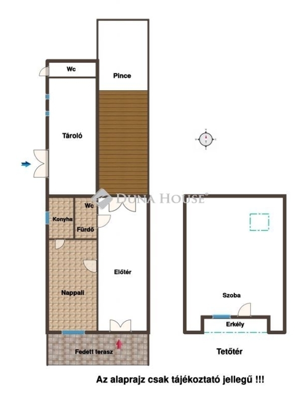 A telken található egy 50 m²-es, téglaépítésű, szigetelt ház, amely 5 éve teljes körű felújításon esett át: megtörtént a víz- és villanyhálózat cseréje, a burkolatok és a festés megújítása, valamint a terasz korszerűsítése. A ház fűtése kályhával megoldott. A fedett, polikarbonát tetős terasz előtt Bianka szőlőlugas biztosít árnyékot és barátságos hangulatot.