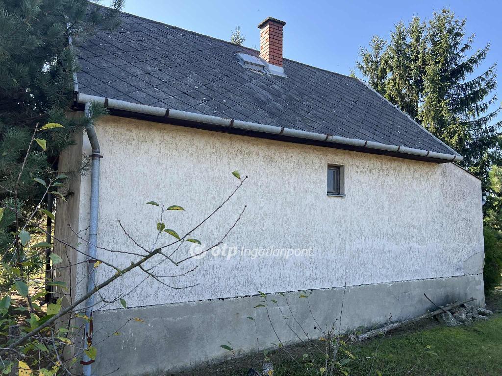 Eladó hétvégi ház Sóstóhegy szélén! Nyíregyháza közigazgatás, külterületén 1.522 m2 területnagyságú ingatlanon két szintes, szintenként 35 m2 alapterületű, szoba, konyha, étkező, zuhanyzó, előtér, terasz, pince helyiségekből álló, engedéllyel épület, térképmásolaton feltüntetett, sávbeton alapozású, szilikát főfalakkal és tégla válaszfalakkal megépített nyeregtetős, kisméretű palafedéssel épület, gázkonvektor fűtéses, - kis ráfordítással lakhatóvá tehető - gazdasági épület. Gáz, villany a házban, vezetékes víz az udvarban található.