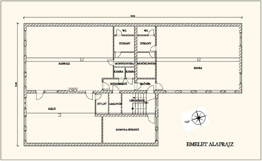 Lakáscélra jelenleg a konyhát, két szobát, fürdőt, gardróbot használja a tulajdonos. Az épület többi része nincs belakva.