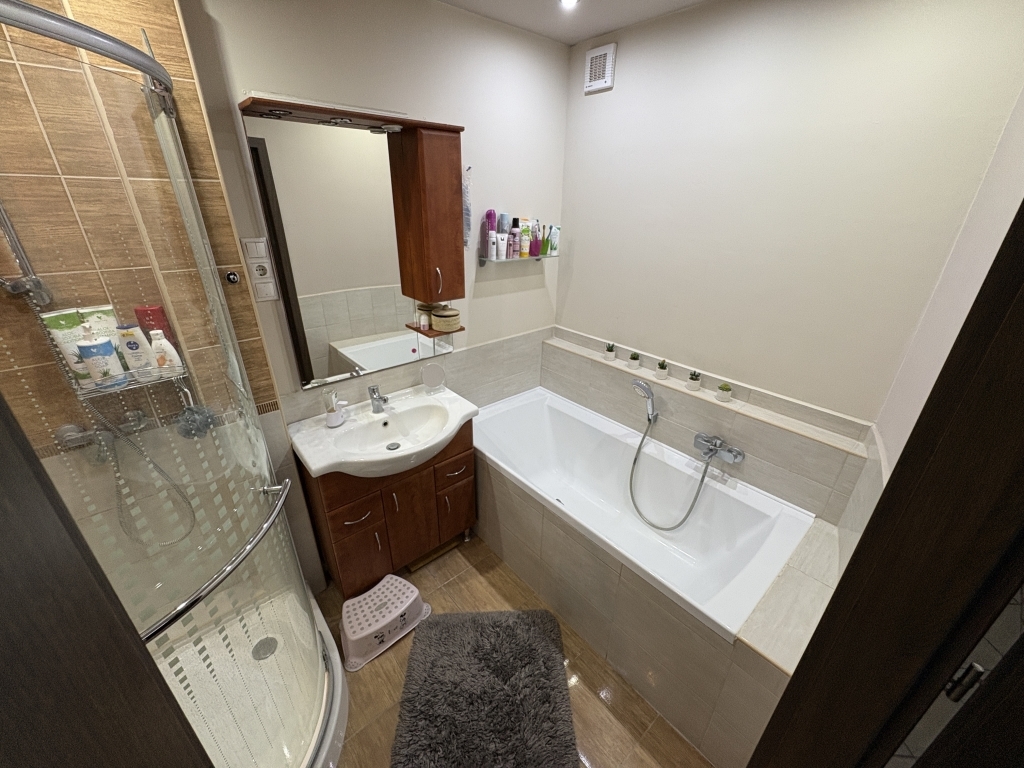 A lakás kiváló elosztású: az amerikai konyhás nappali egy tágas, világos közösségi térként funkcionál, míg a kettő szoba tökéletesen alkalmas hálószobának, gyerekszobának vagy dolgozószobának is. A külön fürdő és WC tovább növeli a mindennapi kényelmet.