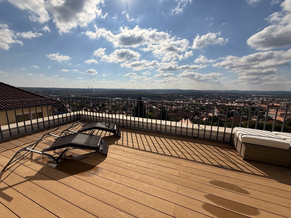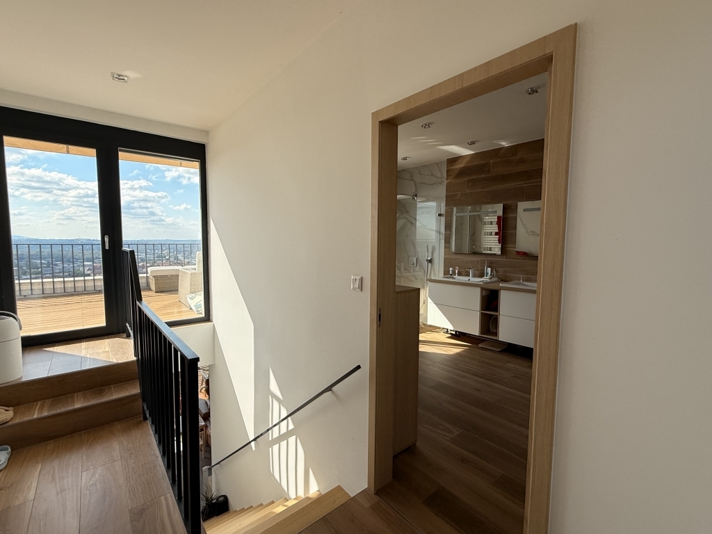 Pécs–Mecsekoldal könnyen megközelíthető, exkluzív részén, Havihegyen eladó egy 2021-ben épült, belső kétszintes, örökpanorámás, kiváló állapotú 80 m²-es lakás, dupla terasszal (összesen +60 m²), saját tárolóval és teremgarázshellyel (19 m²). Igény esetén a teljes bútorzattal együtt is megvásárolható!