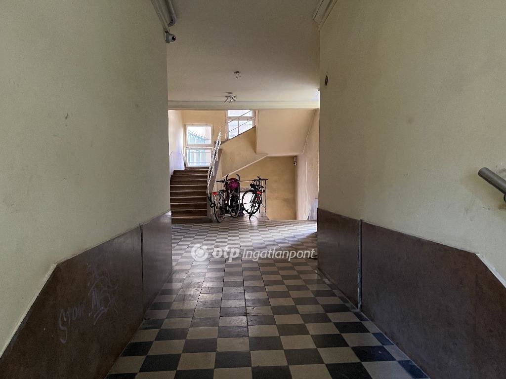 A 2,8m belmagassággal bíró helyiség bejárata a társasház lépcsőházából megközelíthető, az utcafrontra egy nyitható rácsos szellőző ablak kapcsolata van.