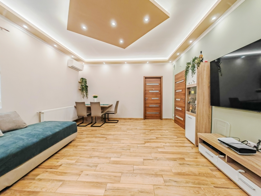 Néhány évvel ezelőtt az egész lakás teljeskörű felújításon esett át, mely a villany, vízhálózat, fűtésrendszer, külső-belső nyílászárók, burkolatok, szaniterek cseréjét és felújítását, klimatizálást, külső homlokzati szigetelést és még sorolhatnám, hogy mi mindent érintett.