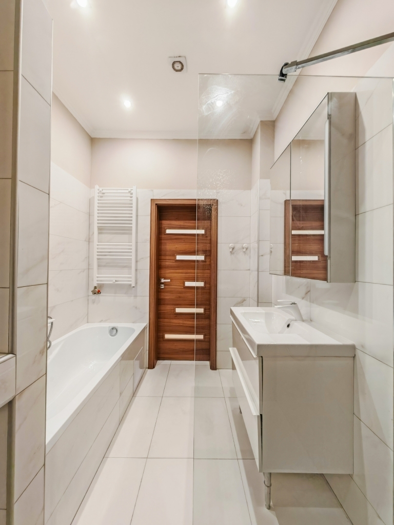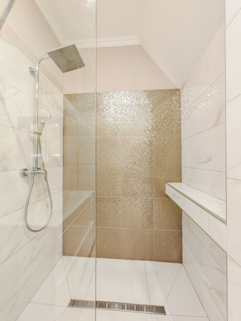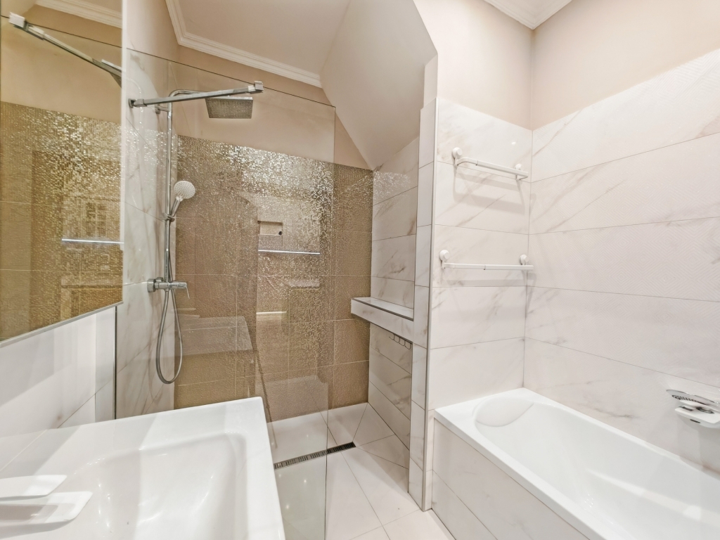 - a nagy fürdő zuhannyal és káddal lett kialakítva